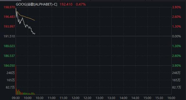 谷歌周四开盘后涨幅一度接近4%,目前收窄至不足1%。