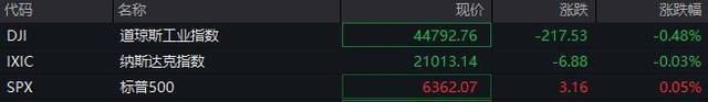 当地时间7月24日,美股三大指数开盘涨跌不一,截至发稿,道指跌0.48%,纳指跌0.03%,标普500指数涨0.05%。